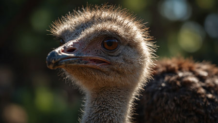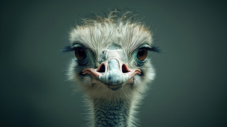 This striking close-up portrait of an ostrich reveals the bird's unique facial features and intense gaze, celebrating wildlife's beauty and character.