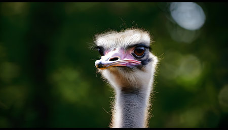AI Generated. Curious ostrich in natural habitat with vibrant greenery