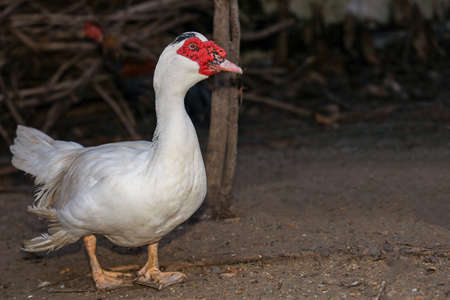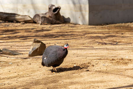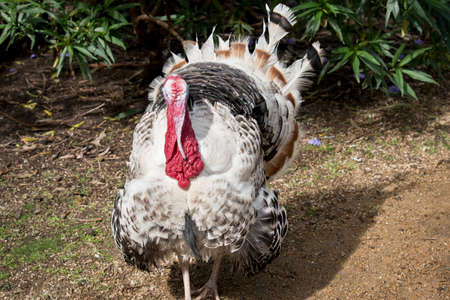 Turkey a pecking on stony ground. The turkey is very large in the countryside. Subsistence farming