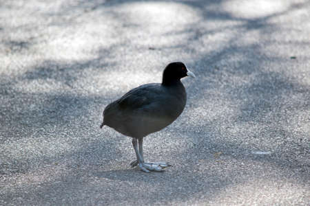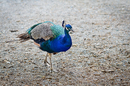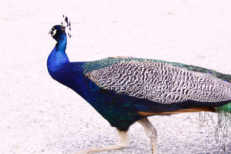 beautiful colorful peacock bird in the park on a cold day outdoors