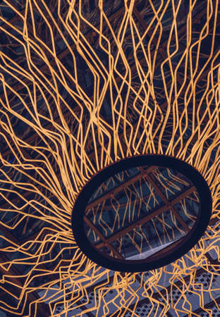 Metal elements are interconnected in a geometric sequence. Abstract art background geometry objects