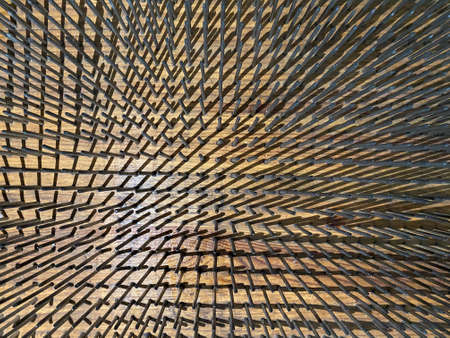 Geometric background of a building with wooden sticks of square shape forming cubes.