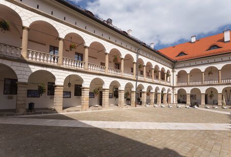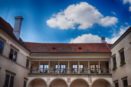 Medieval castle Rozmberk nad Vltavou, Courtyard with Renaissance arcade, South Bohemia, Czech Republic, September 26, 2020