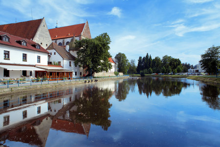 River behind the Church of Presentation of Virgin Mary in Ceske Budejovice, Czech Republic