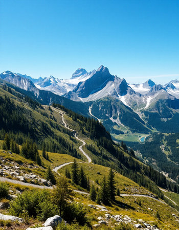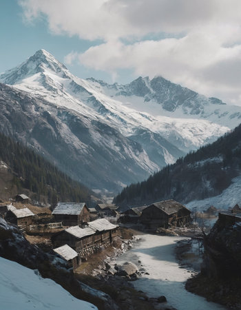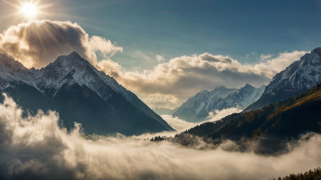 An AI generated illustration of majestic mountains revealing the majestic calm crisp beauty of nature