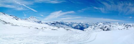 Panorama of ski runs on the Kaunertal glacier in Austria.