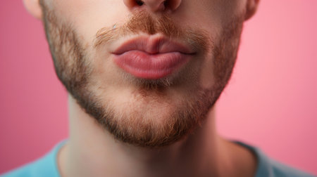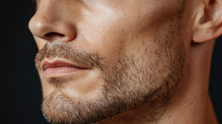 Close-up of masculine male chin and lips with natural stubble in soft sun light. Generative AI