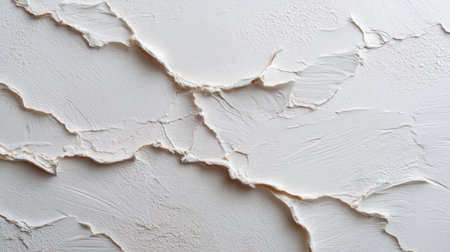 A close-up view of a textured white wall surface featuring cracked plaster, creating unique patterns and an elegant aesthetic ideal for various design and architectural projects.