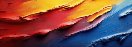 Abstract blue, red, and yellow background with brush strokes. Modern art painting. Digital illustration of an abstract futuristic design. High resolution, sharp focus, intricate details, professional studio lighting, elegant composition, highly detailed, digital concept art, digital paintbrush, dynamic angle, hyper-realistic, super-detailed. --ar 83:30 --stylize 750 --v 6.1 Job ID: 913e4234-3061-4c17-864c-8e72af866c23