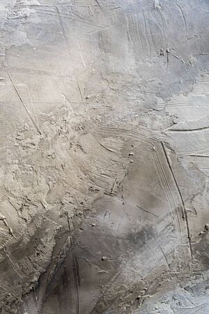 Textured plastered background with a variety of arbitrary stains. Gray.