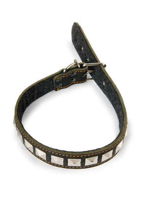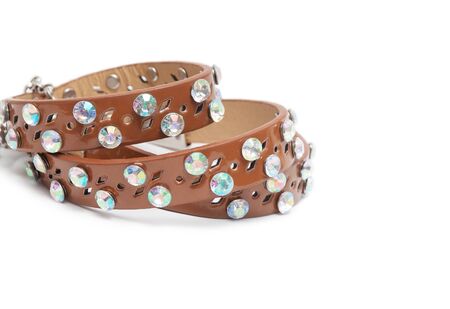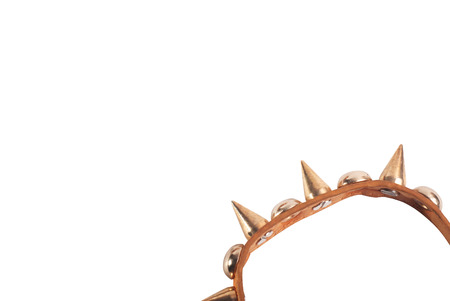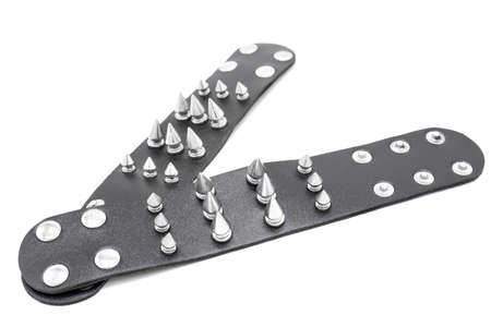 template for designer, frame, brown leather Bracelet with spikes isolated on white background, fashion accessory