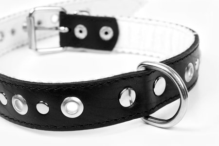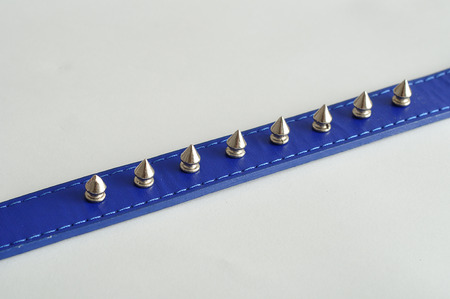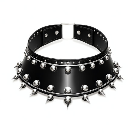 Stylish spiked leather dog collar displayed on a soft, textured fabric background