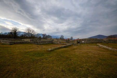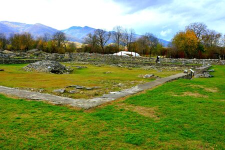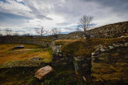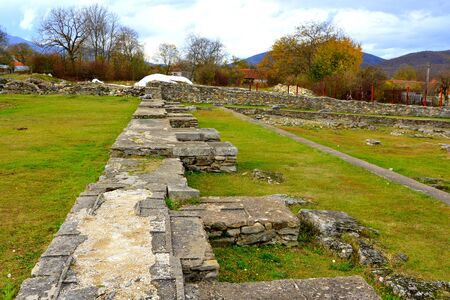 Hunedoara, Romania, January 08-2022. The ruins of the fortress Ulpia Traiana Sarmizegetusa, the Roman fortress of the years. 108-110.