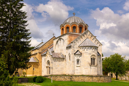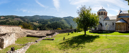 STUDENICA, SERBIA - JULY 16: Serbian orthodox Monastery Studenica, founded in 12th century, on July 16.2019. in Studenica, Serbia
