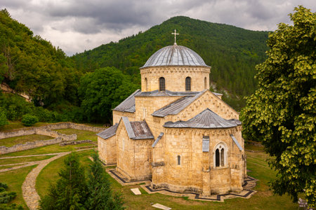 STUDENICA, SERBIA - JULY 16: Serbian orthodox Monastery Studenica founded in 12th century, on July 16.2019. in Studenica, Serbia