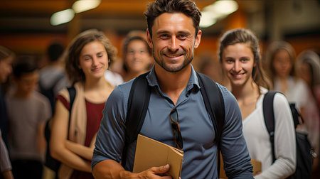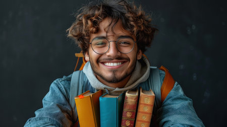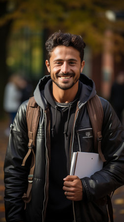 Indian student ready to go to class, back to the university concept. Handsome man smiling at camera