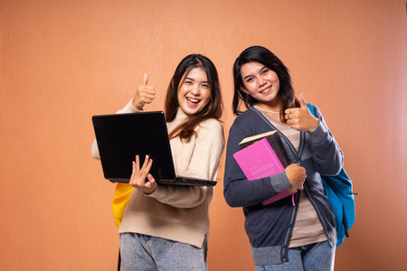 Joyful students proudly showcasing their notable achievements surrounded by laptops and books