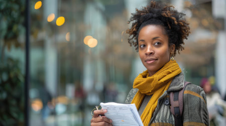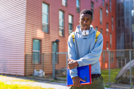 Urban african american student standing proud looking at camera outside the university
