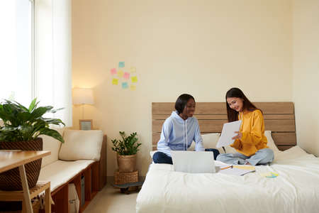 Teenage girl asking friend to help with doing homework for school