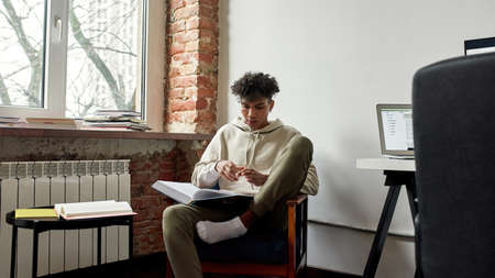 Gen z African American man read book at home
