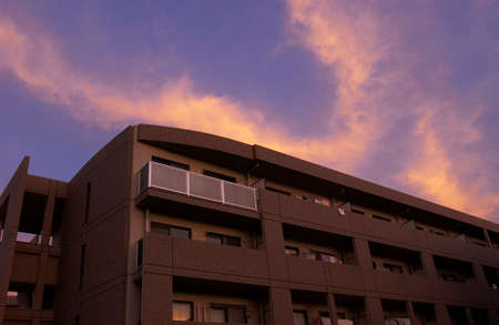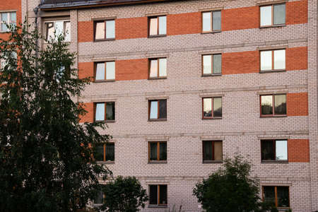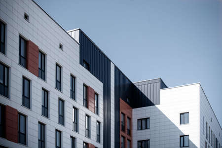 Modern apartment building in sunny day. Exterior, residential house facade.