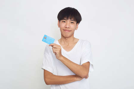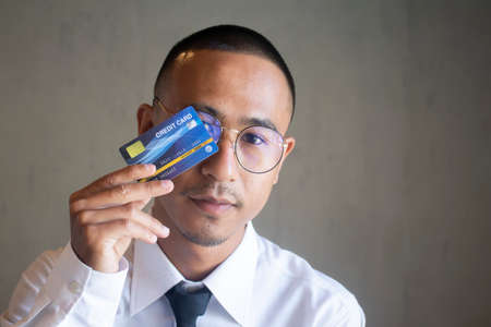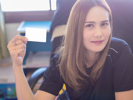 Asian beautiful Women working in office. and show the Credit Cards. Financial of Women concept.