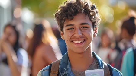 A young individual stands confidently in a vibrant urban setting, holding a ticket. The scene captures the essence of adventure and exploration in the city.
