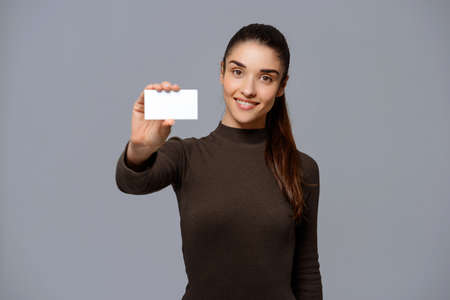 Cute Beautiful Woman Showing Blank Business Card Stock Image