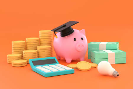 College Piggy Bank With Graduation Hat. Education Piggybank