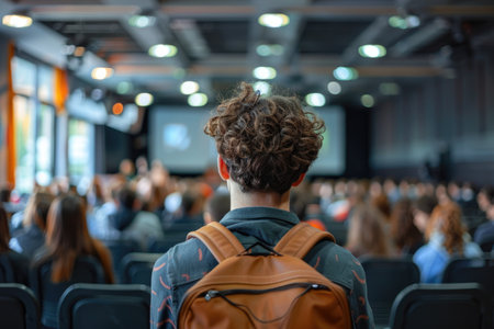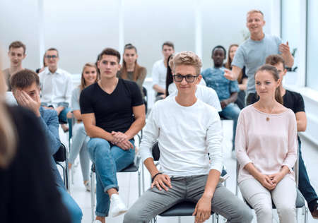 A young man at a business training in the audience. Best business practices.