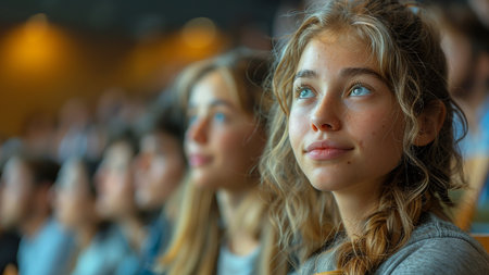 High school students paying attention in class, sitting in their desks and writing notes, back to school concept.