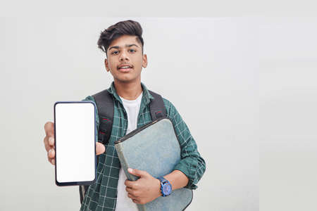 Young indian college boy getting ready for college after the lock down is over. College and School reopen after lock down.