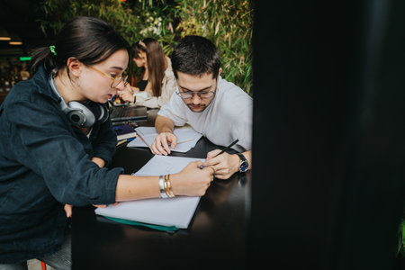 High school friends collaborating on homework at a cozy coffee bar