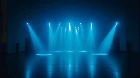 Empty room for product display with concert stage spotlight lighting