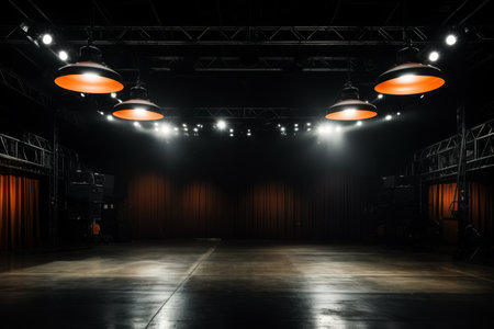 AI Generated. Empty stage illuminated by spotlights creating a dramatic atmosphere