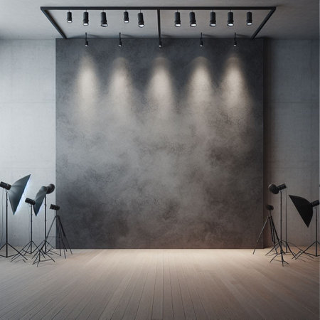 Interior of a photo studio with professional lighting equipment and lighting equipment
