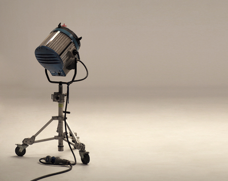 Big LED studio spotlight and tripod for professional video or movie commercial shooting.