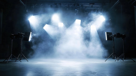 projector spotlights in smoke texture . lights beam for showing presentation . production and director multimedia background .