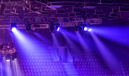 stage lighting in the theater and at the concert. Lighting equipment on an empty stage.