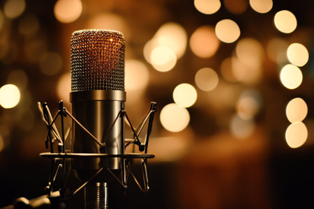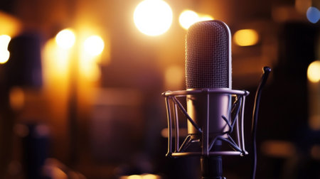 Professional studio microphone in warm cinematic lighting