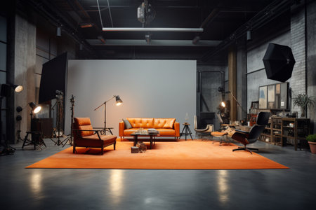 A spacious photo studio provides the perfect backdrop for design and advertising work. A high quality image making by generative ai.