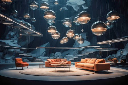 Space-age room with orb-like lighting fixtures