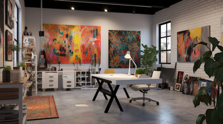 Vibrant home office paintings, murals and inspiring colors., generative AI