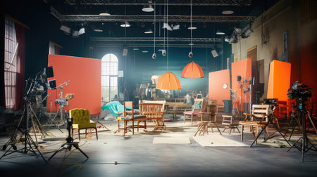 Interior of a modern photo studio with lighting equipment and lighting equipment