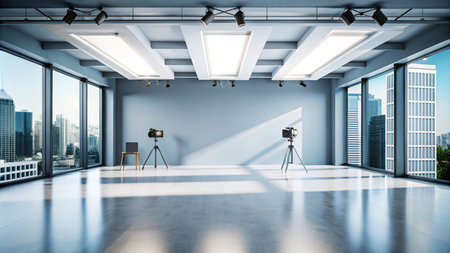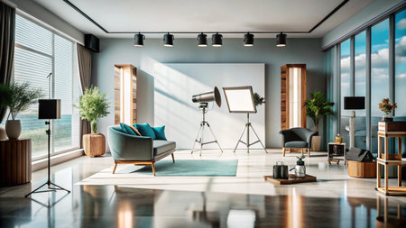 photographic studio with modern lighting equipment Light spring room studio interior Luxury decor with daylight : Generative AI