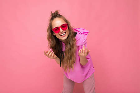 cheerful woman with bright makeup pink hair Glamor posing fun