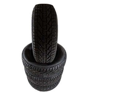 Winter vehicle tires stacked up for sale. New studded tires for sale