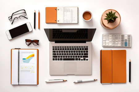 Modern Business Essentials: A Top-View Collection of Desktop Objects