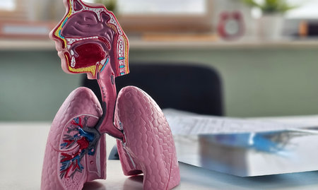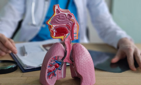 Medical model of human respiratory system displayed during consultation with doctor in clinic