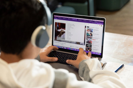 CHIANG MAI,THAILAND - APR 11 , 2020 : A working from home employee is downloading the Microsoft Teams social platform, ready for remote working in isolation from home